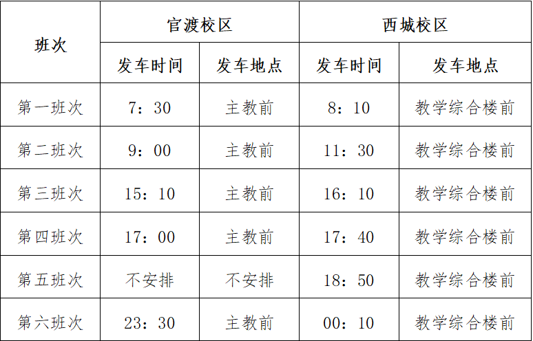 “清明节”期间官渡、西城校区交通车时间表