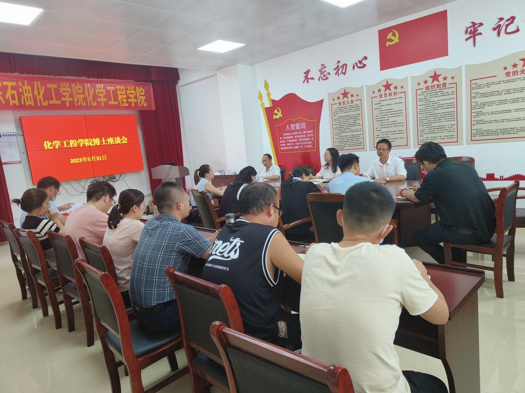 为进一步激发博士的科研积极性,提高科研成果质量,更好发挥博士队伍的引领作用,5月31日下午,化工学院在西城校区化工楼C204室召开博士座谈会,学院领导班子成员出席会议,全体博士参加座谈会。