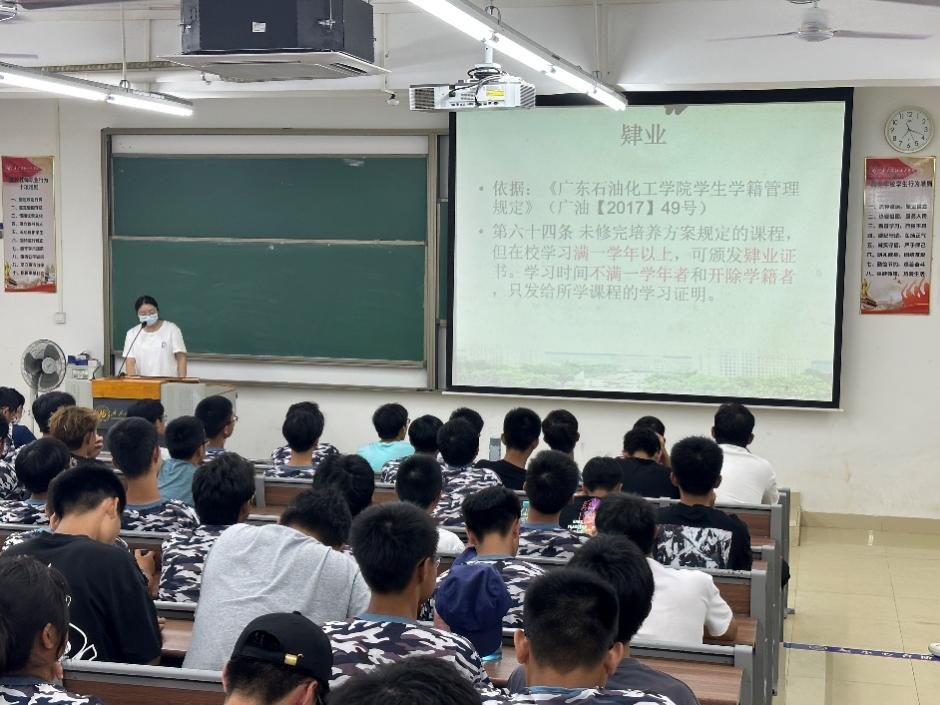 为了让2023级新生更快地适应大学生活,熟悉了解学校的学籍制度,9月23日晚,化学工程学院在西城校区J02教室举行了2023级新生入学教育大会。化工学院办公室教务员游虹担任主讲老师。化工学院全体23级新生参加会议。