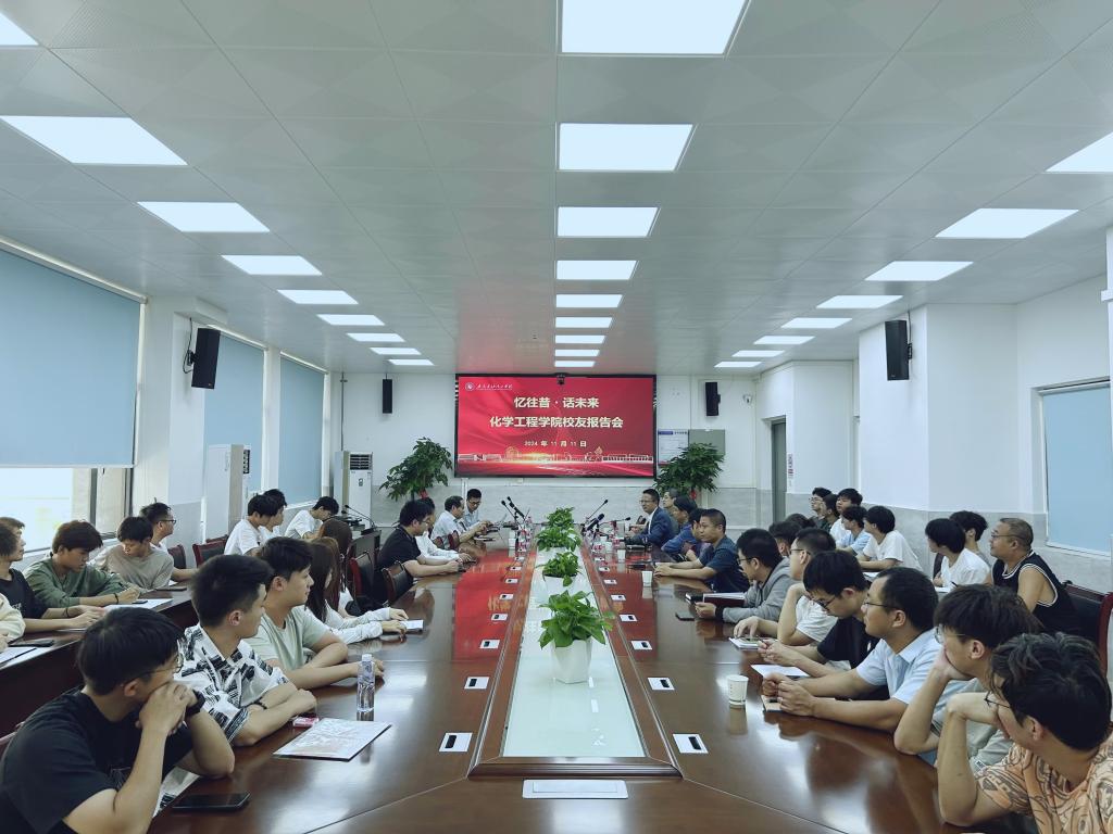 2024年11月11日下午3点,为热烈庆祝建校70周年,化学工程学院在化工楼C203举办忆往昔·话未来——校友座谈会。校友代表中国石油长庆石化公司罗茂强处长(炼8320班)、江门东洋油墨有限公司梁锦球总经理(有机8006班)、中科院广州化学所首席研究员林树东主任(化工01-1班),学院党委书记隋亦可、院长余长林及师生代表参加座谈会。