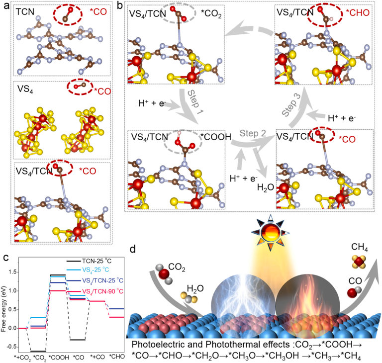 论文提出的CO2的高选择性光热催化转化为甲烷的机理