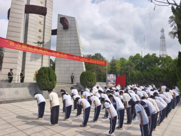 实地祭扫结束后,全体人员移步至茂名市革命英烈事迹展三楼多功能厅,集中开展线上“云端祭扫”活动。通过“中华英烈网”平台,师生们在线默哀、敬献花篮并庄严宣誓。