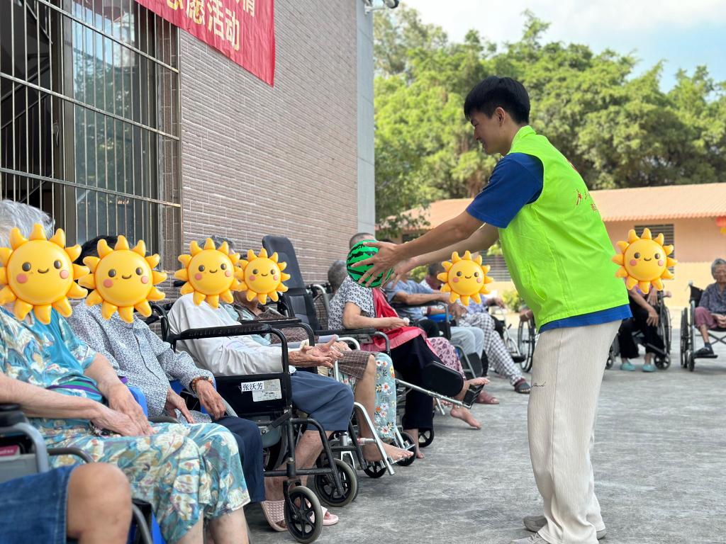 志愿者与老人一起耍球